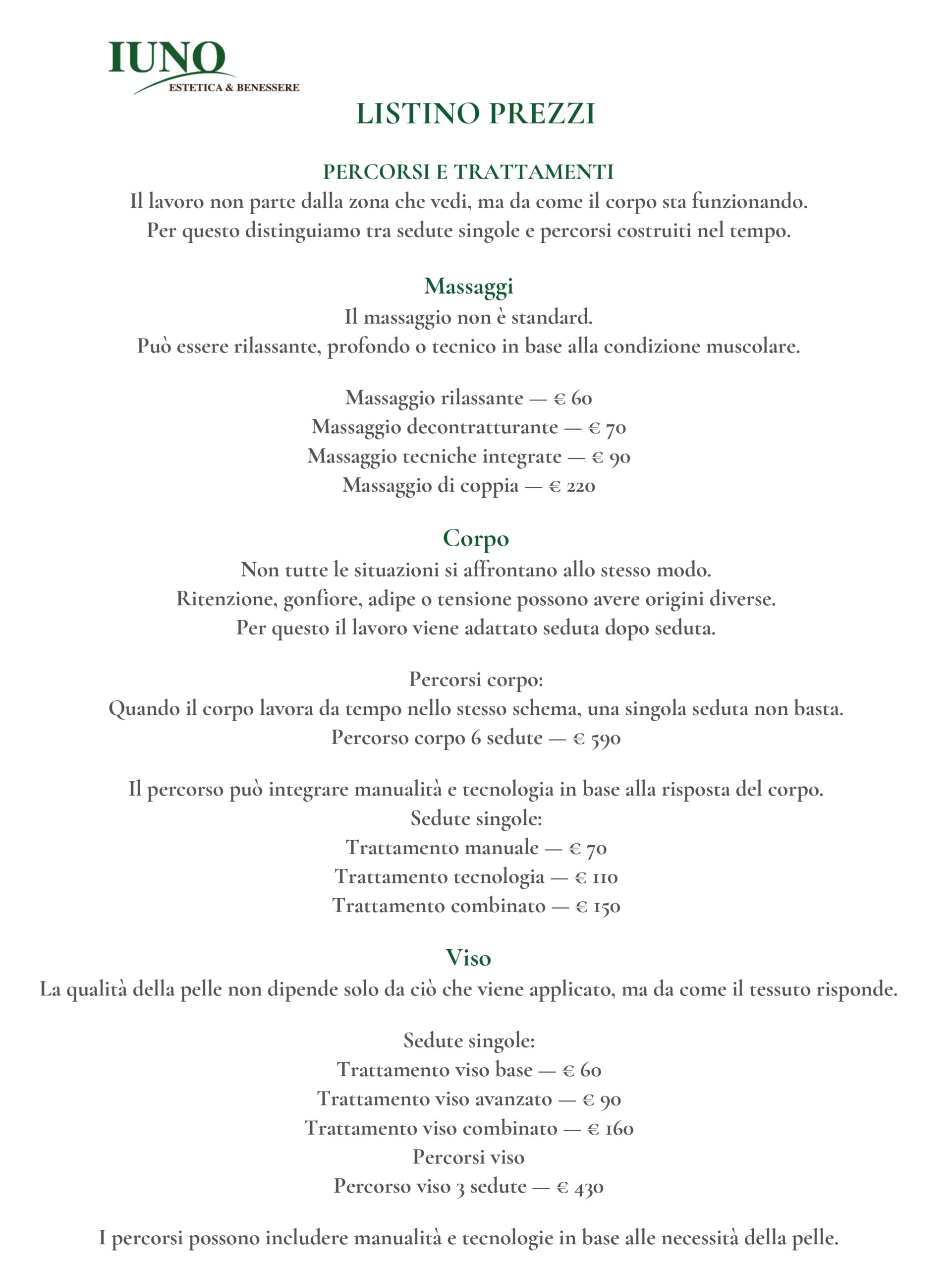 Il Centro per l’Estetica e il Benessere Psico-Fisico iuno, nasce per offrire alla propria clientela Trattamenti Personalizzati di vario tipo.